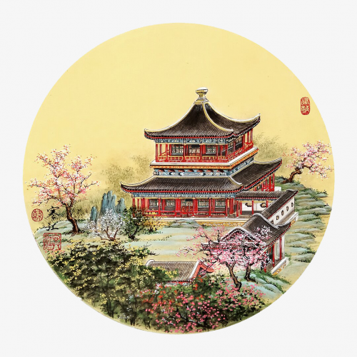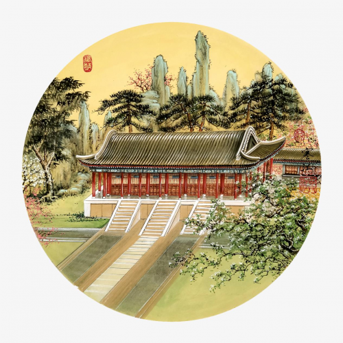 下:工笔界画《圆明园.凤麟洲图》,尺寸:68x68cm,纸质:生宣卡纸。